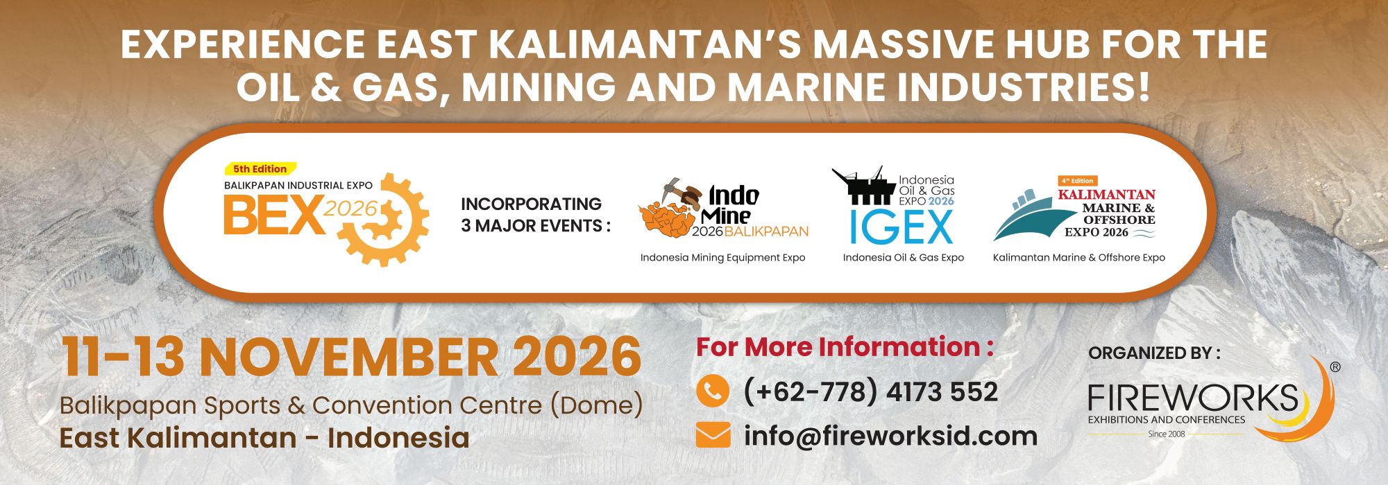Balikpapan Industrial Expo (BEX) 2026 is the only event in the Kalimantan region dedicated to the Oil & Gas, Offshore, Mining and Marine Industry strategically located at the heart of the industry! The international event is scheduled to host more than 4000 visitors and more than 100 exhibiting brands looking to penetrate the Kalimantan industrial market. An annual event hosted in Balikpapan, the event would reach key decision makers, end users and C-Level management based in the Kalimantan region.